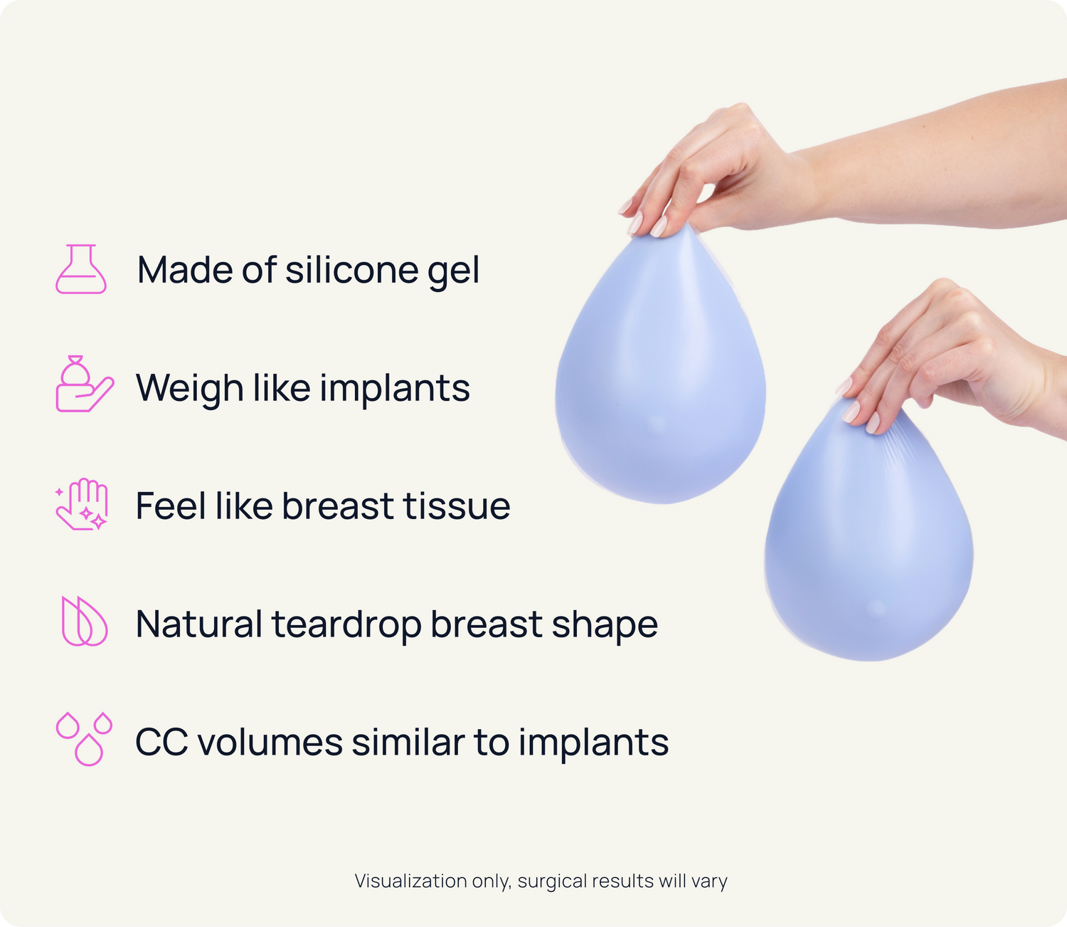 Designed to form around existing breast tissue and simulate contours of the breast.